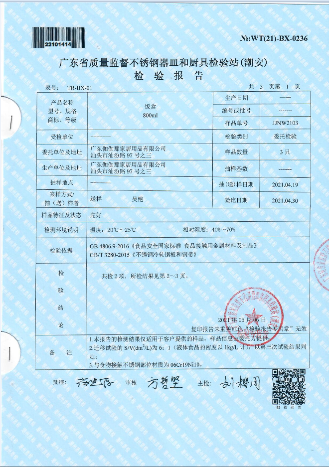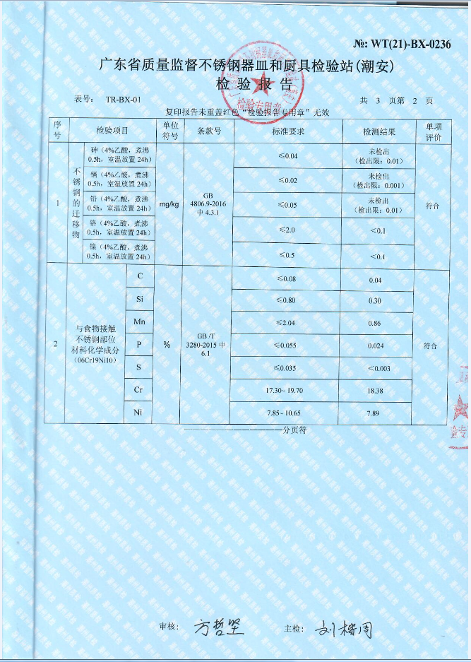 单层不锈钢检验报告