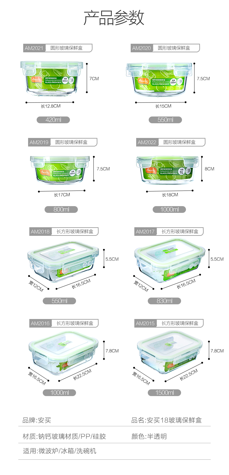 圆形玻璃保鲜盒AM2020
