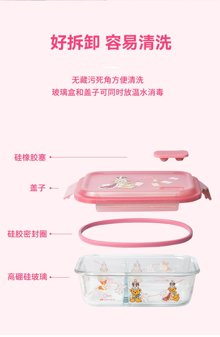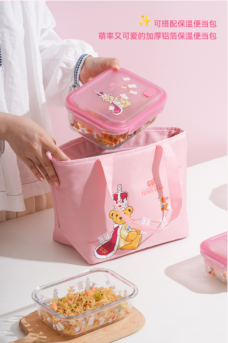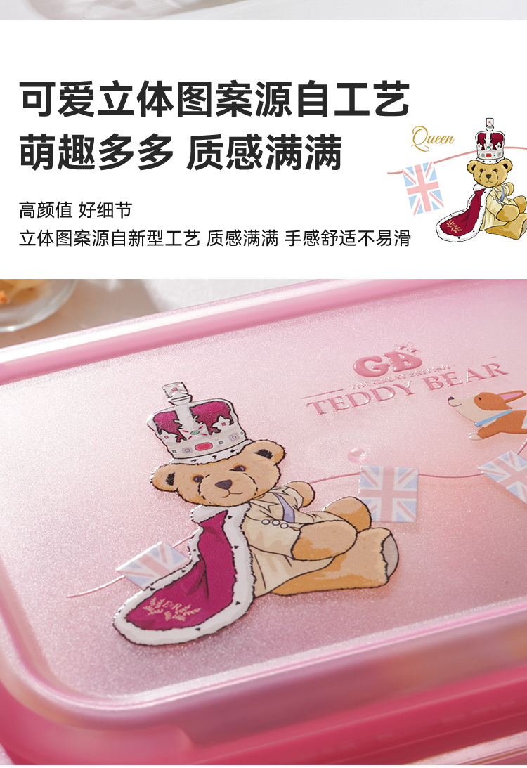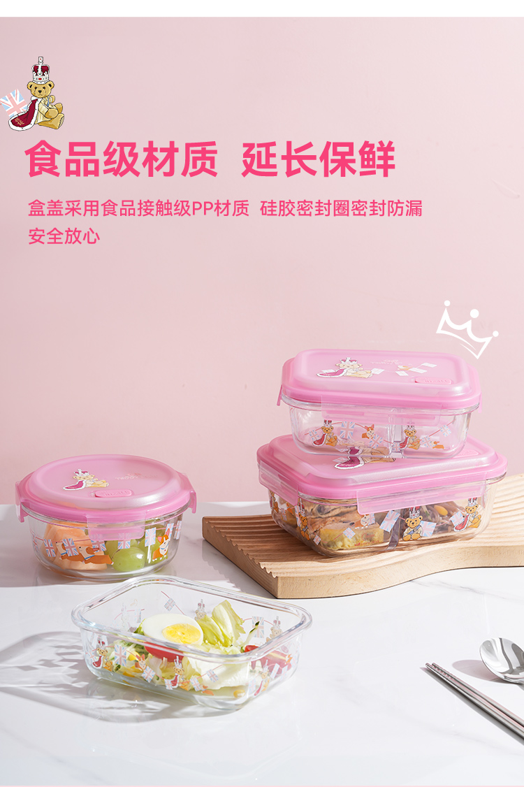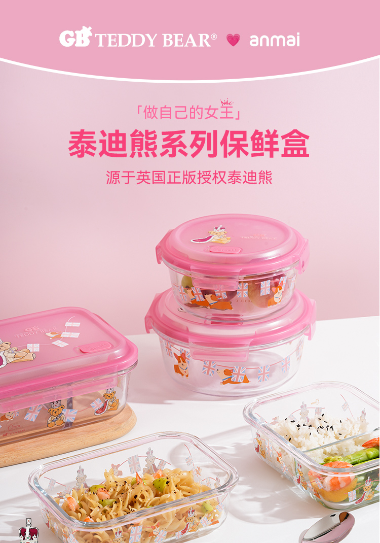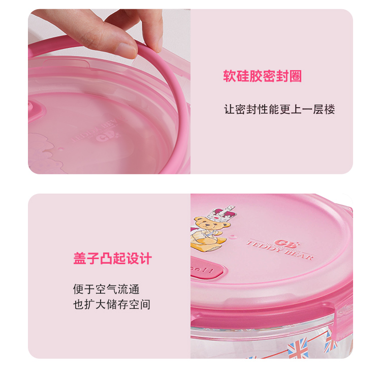 GB泰迪熊高硼硅玻璃圆形保鲜盒650ml-女王-S1657