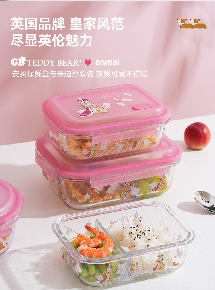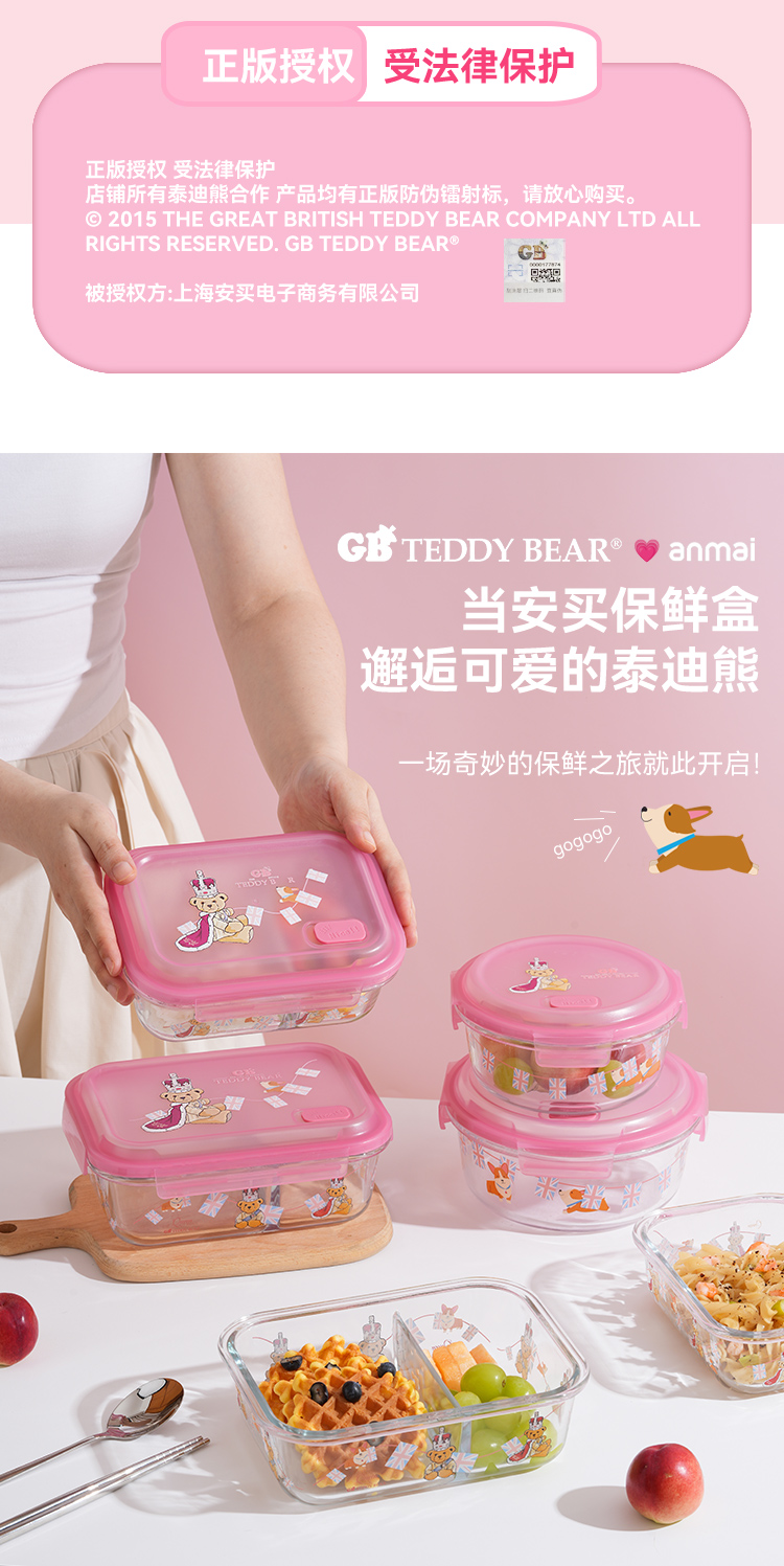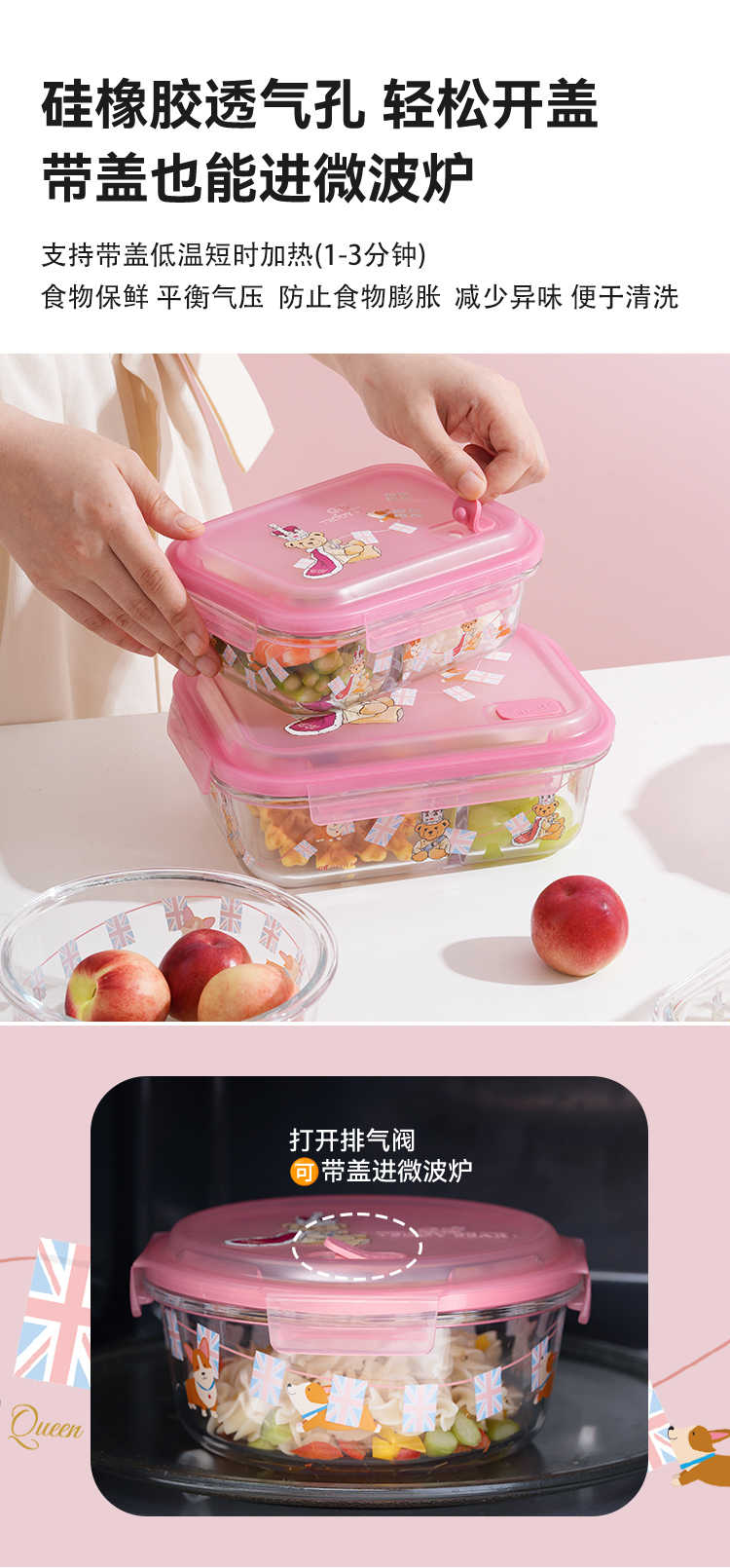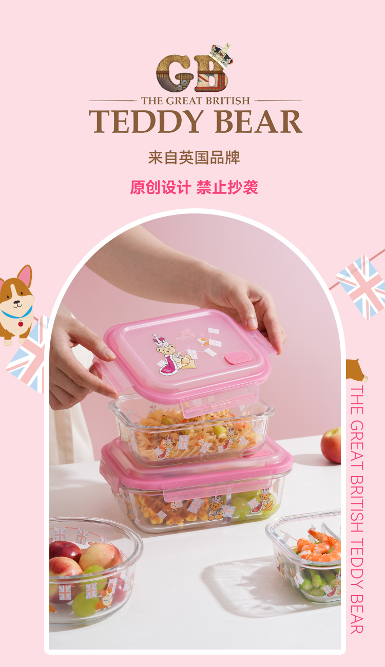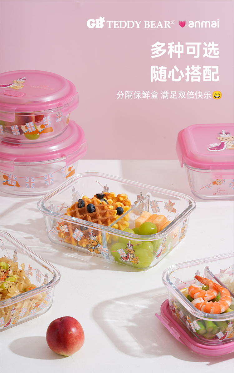 GB泰迪熊高硼硅玻璃圆形保鲜盒650ml-女王-S1657