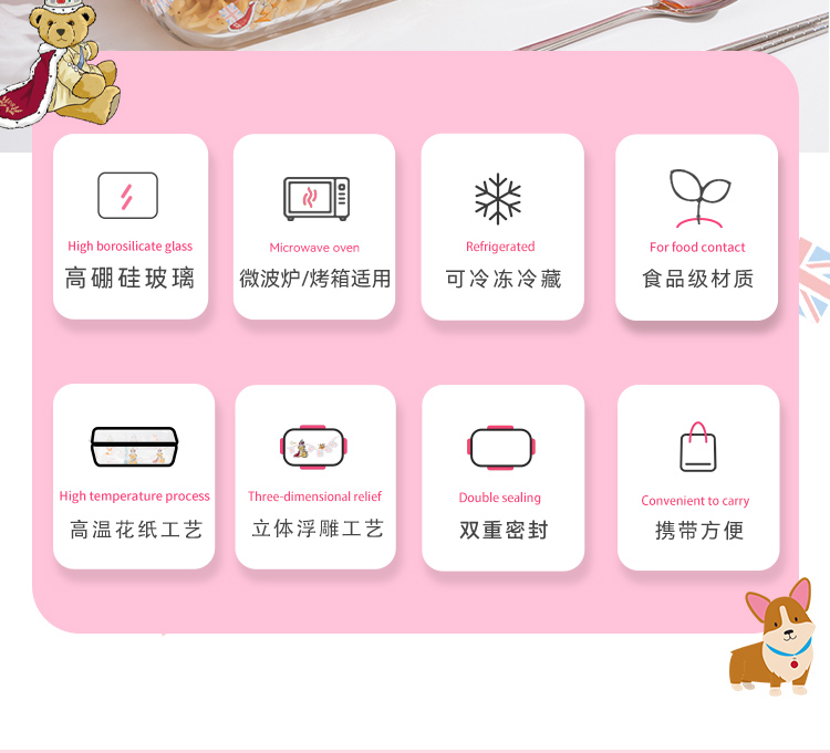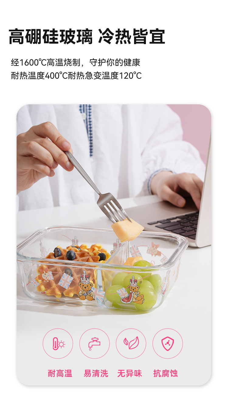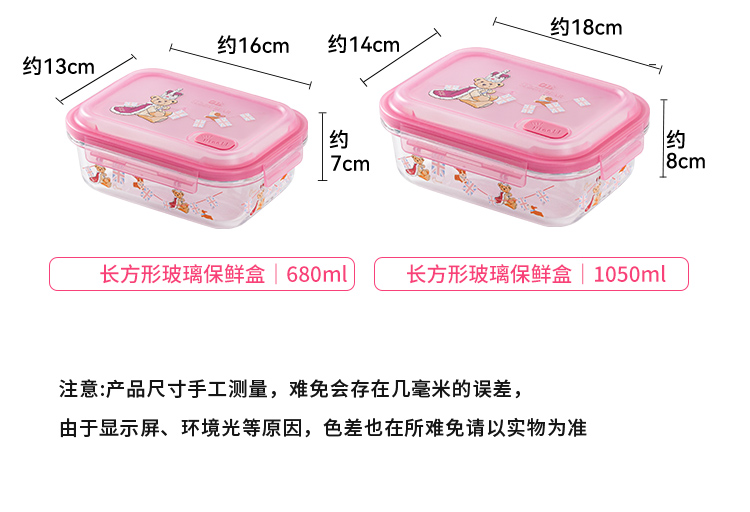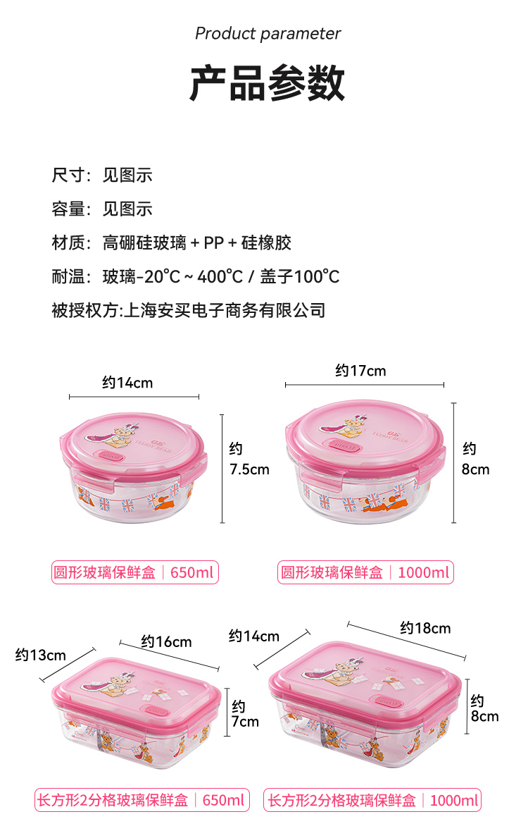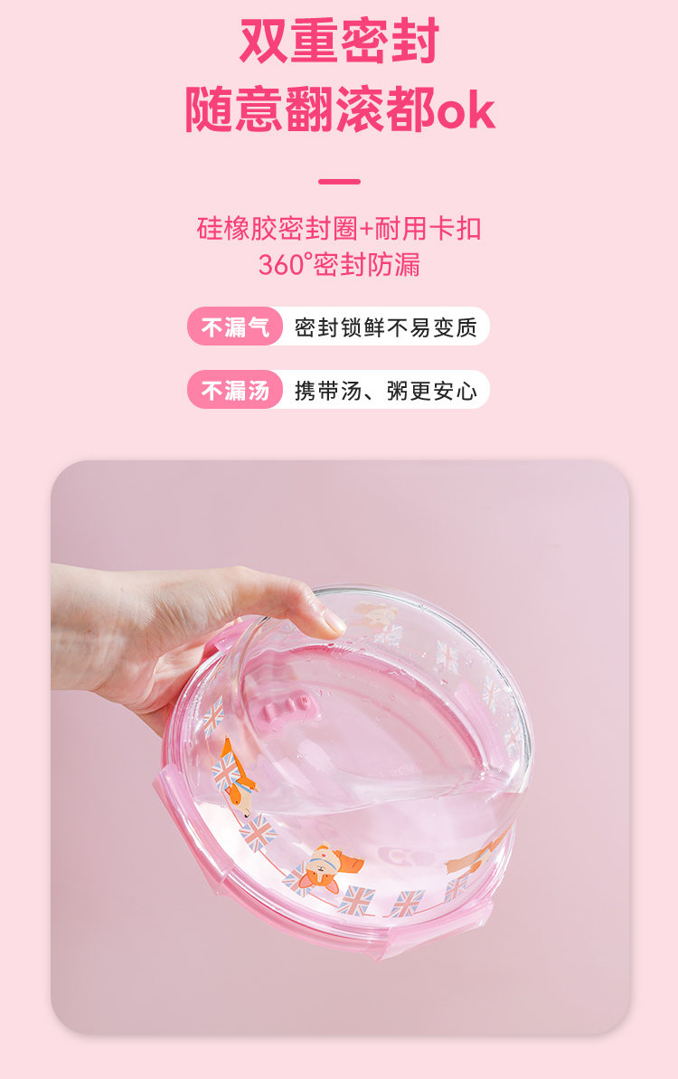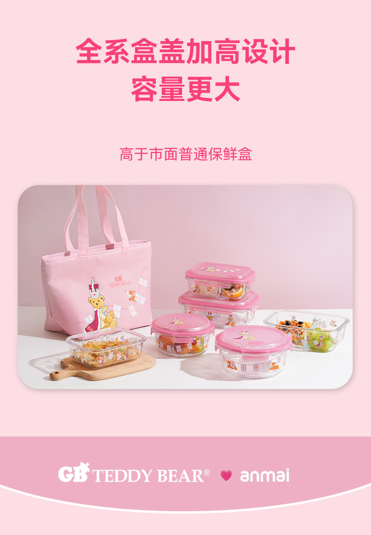 GB泰迪熊高硼硅玻璃圆形保鲜盒650ml-女王-S1657
